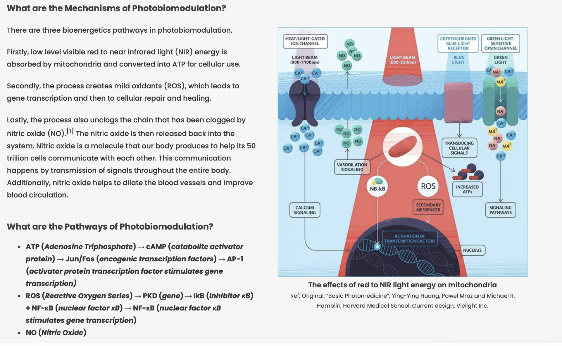 Your brain’s mitochondrial performance can be improved by absorbing light energy (photons) of specific wavelengths. This process is called photobiomodulation or PBM. Scientific research shows our brain’s mitochondria respond positively to light energy within the NIR wavelength range.